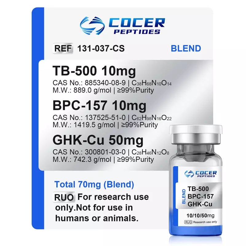 When these three substances are used in combination, their synergistic effect may further accelerate the wound healing speed and shorten the healing time. The three substances promote wound healing from different perspectives. TB500 and BPC157 mainly promote cell migration, proliferation, and angiogenesis, while GHK-Cu promotes the production of collagen and elastin. Under the combined action, the wound may heal faster.